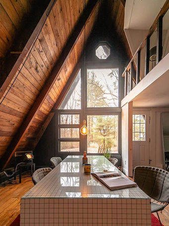 Looking for a unique vacation cabin in NY state to unwind, disconnect, and enjoy some time in the mountains? Deep in the heart of the Catskill mountains, this beautiful off-grid A-frame cabin sits on a two-acre property with private access, surrounded by woods. The newly renovated house features two full bedrooms, two private baths with soaking tubs, a very comfortable convertible sofa, a chefs kitchen, a large open and airy floorplan, and a wooden outdoor terrace. The all black A-Frame cabin also has a fire pit, drum BBQ grill, picnic table screened in a gazebo overlooking a small spring-fed pond and endless forest views. There’s a rooftop solar array to generate energy on its own.