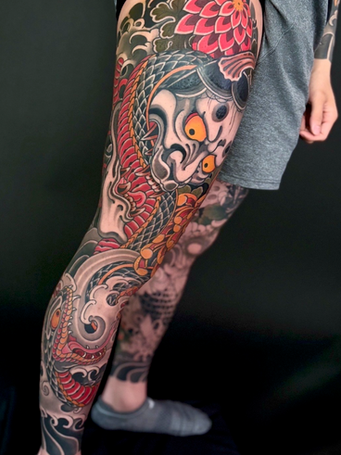 For collectors throughout the Hudson Valley and well beyond, Acala Tattoo Collective has become a true destination. Clients travel from Beacon, Poughkeepsie, Newburgh, across the region, and from around the country for large scale work, sleeves, backpieces, and fully custom projects. On any given day, multiple large scale pieces are in progress alongside first time clients receiving the same level of attention and care. It is a studio built for both the serious collector and the person walking in for their first piece, with an experience that meets both at a high level.