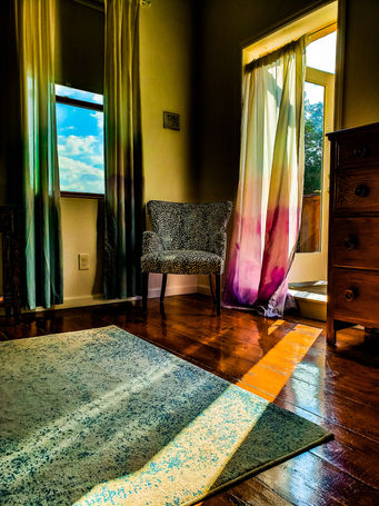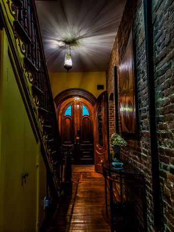 With spectacular views of the Hudson River, the home features three bedrooms, each with a combination lock, private bath, free wifi, no TV and original artwork. Some of the original details remain, like the massive front door, the staircase and herringbone-patterned wood floors with inlaid details, as well as exposed brick, all of which adds to the historic char.