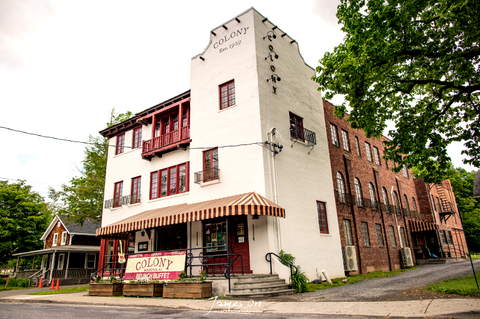 Woodstock's happening music venue is a neat place to grab a drnk and some bar food. The small, intimate setting has a second-floor, wrap-around balcon where you can sit and eat abouve the din, or enjoy primo seats for a live music show. Colony was recently purchased by new owners and renovated. It's new incarnation has a lounge vibe with wood floors, chairs, and tables; and bulbous, orange string lights to tie it all together. Going out, we would always hear about the glory days of Woodstock – the incredible artistic community, the many, storied nightspots and of course the world-class music heard in many different rooms and halls, almost every night of the week. There were, of course, many reasons why things changed over the years, but we believe there is still a very large and passionate community of music-lovers in the area that wants to come out for great music in a great room.