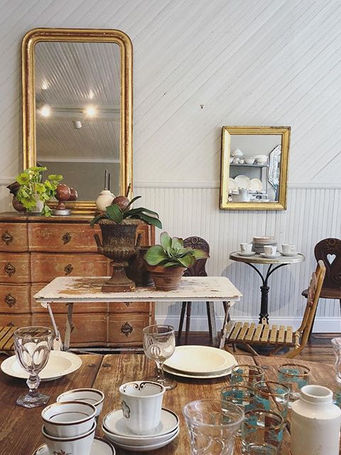 Beautiful antique linens, glass tableware, crockery and pottery, beautifully worn and patinated furniture, and colorful glass ornaments are just a few of the offerings in this lovely shop. Out back, you can peruse the little courtyard garden to view the architectural salvage, chairs, tables, iron urns and a revolving door of eclectic items that will catch your eye.