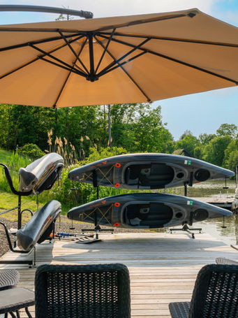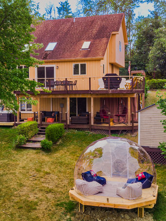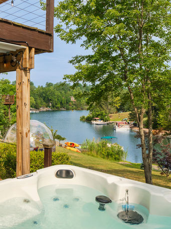 Outdoors is where the lakehouse truly earns its name. A private dock puts the water immediately in reach for swimming or kayaking, while the deck becomes a natural gathering place from morning coffee through sunset. Evenings often revolve around the hot tub or the fire pit, with the lake stretching quietly out in front of you. The plexi-glass stargazing dome turns nights into an experience of their own, a place to sit back, look up, and lose track of time.