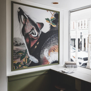 The concept is tangible upon entry, with café style seating lining the outer walls, taxidermy pheasants frozen in flight, and whimsical art murals depicting wild animals in forest scenes, it feels more like entering into a children’s picture book than a high-end dining establishment, which it still indeed is. However, nothing about walking into Wilde Beest is intimidating. The team is young, friendly, clearly enjoying what they do. Rock n roll is spinning on the record player, and stacks of carefully curated vinyl albums which are played in full LP to add to the dining experience, to start a conversation, to tap a memory or feeling, and to just have fun.